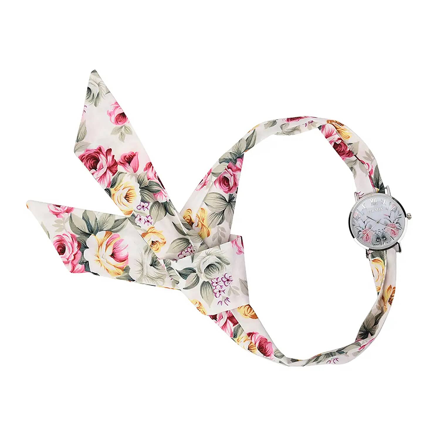 Strada Japanese Movement Watch with Multi Color Floral Printed Chiffon Strap (34.5 inch)