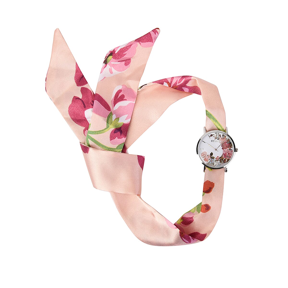Strada Japanese Movement Watch with Pink Floral Print Chiffon Strap (34.5 inch)