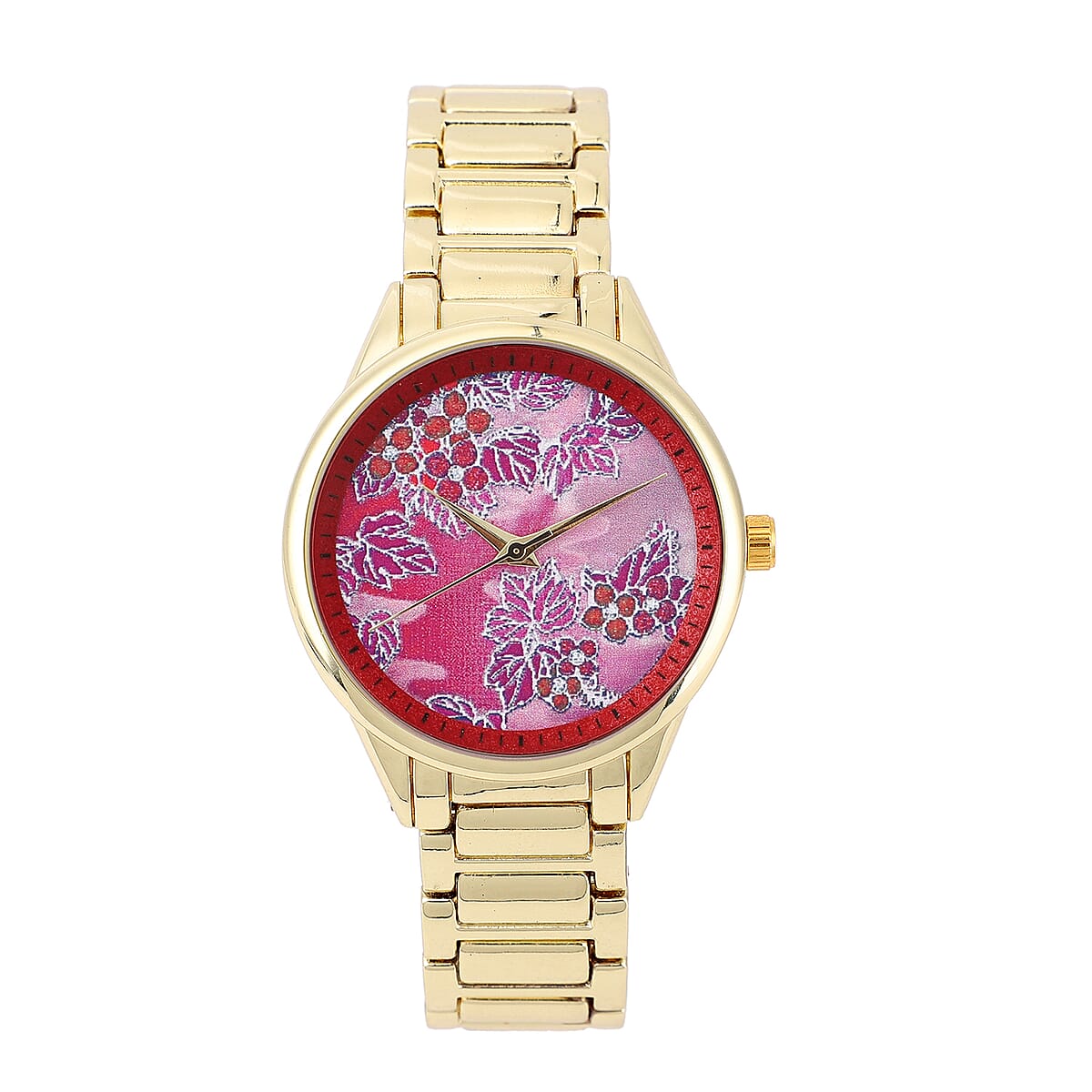 Strada Japanese Movement Watch with Red Background Flower Pattern Dial