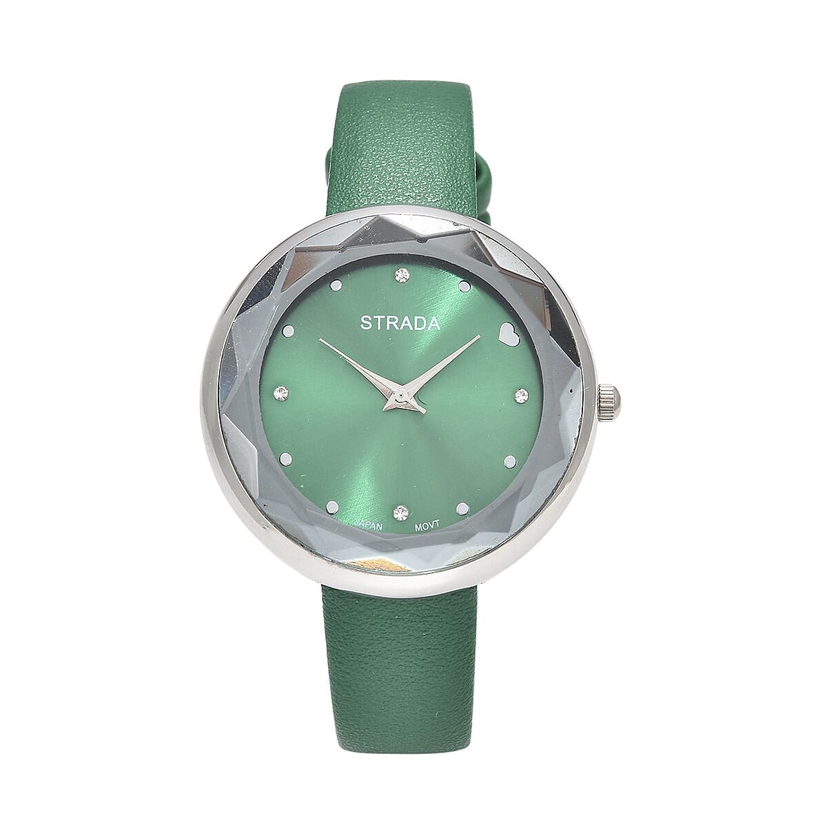 Strada Japanese Movement White Austrian Crystal with Green Dial Watch in Green Faux Leather Strap (36.32mm) (6.25-7.75 Inches)