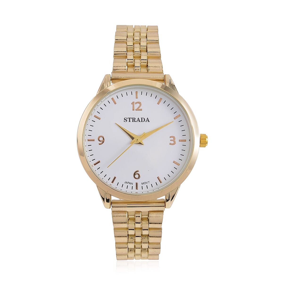 Strada Japanese Movement White Dial Watch in ION Plated YG Stainless Steel (36mm) (6.50-7.50Inches)