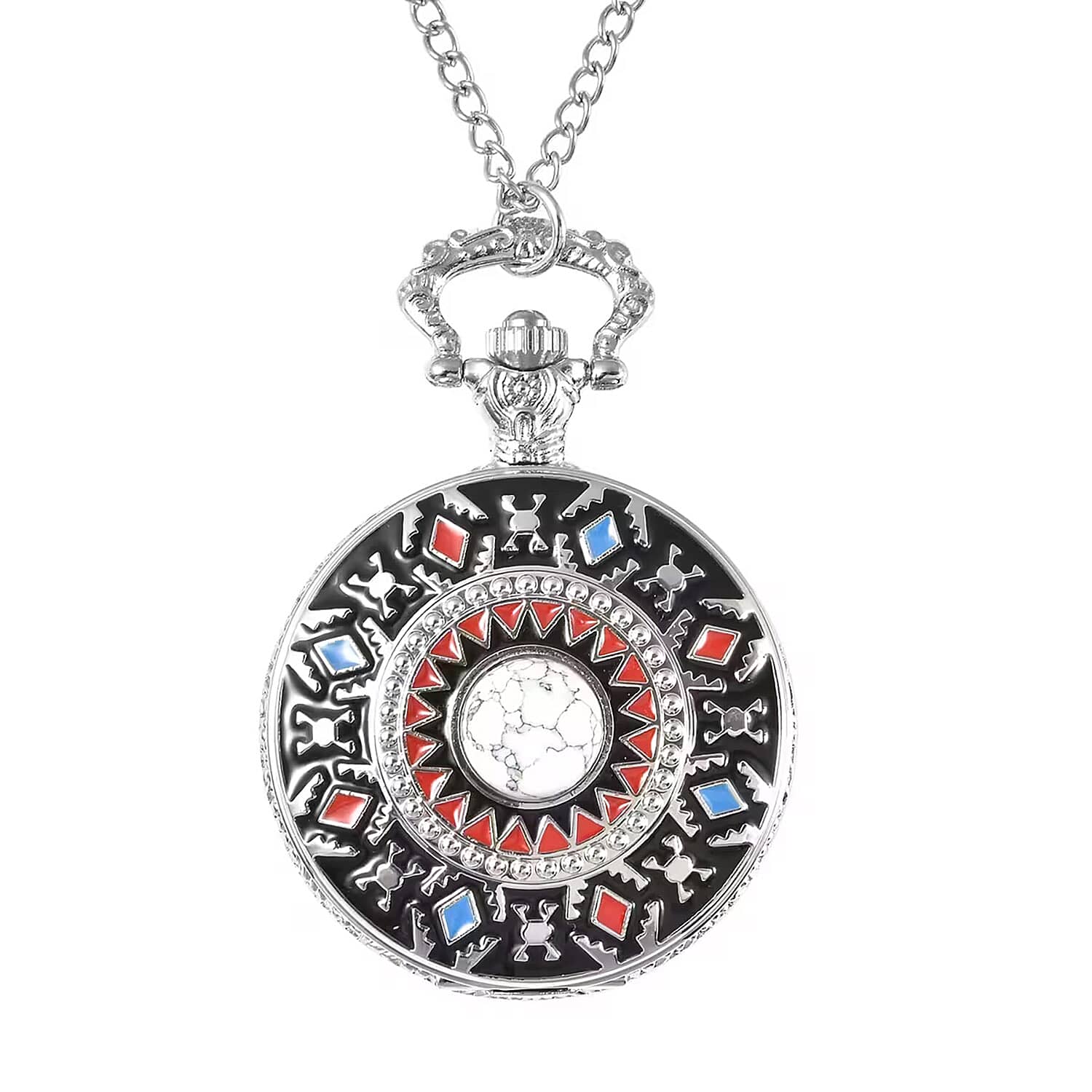 Strada Japanese Movement White Howlite 2.50 ctw Pocket Watch in with Chain 31 Inches