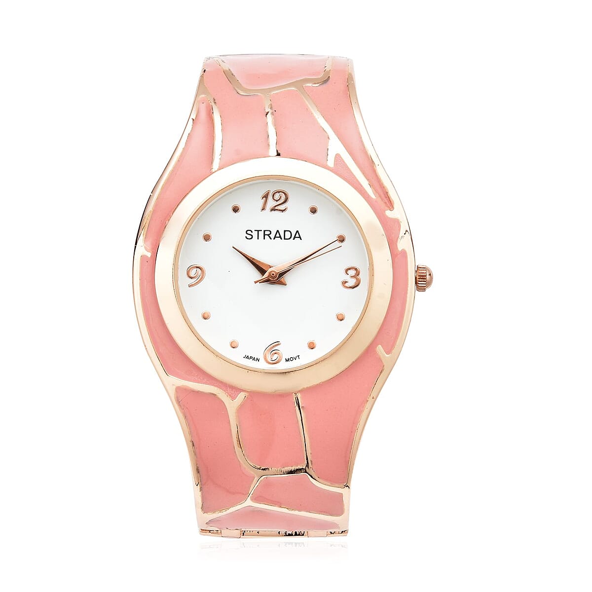 Strada Pink Enameled Japanese Movement Watch in Rosetone Strap (29.50mm) (7.0-7.75 Inch)