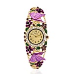 Strada Purple and White Crystal Japanese Movement Butterfly and Floral Pattern Bracelet Watch in Goldtone (7.00 In)