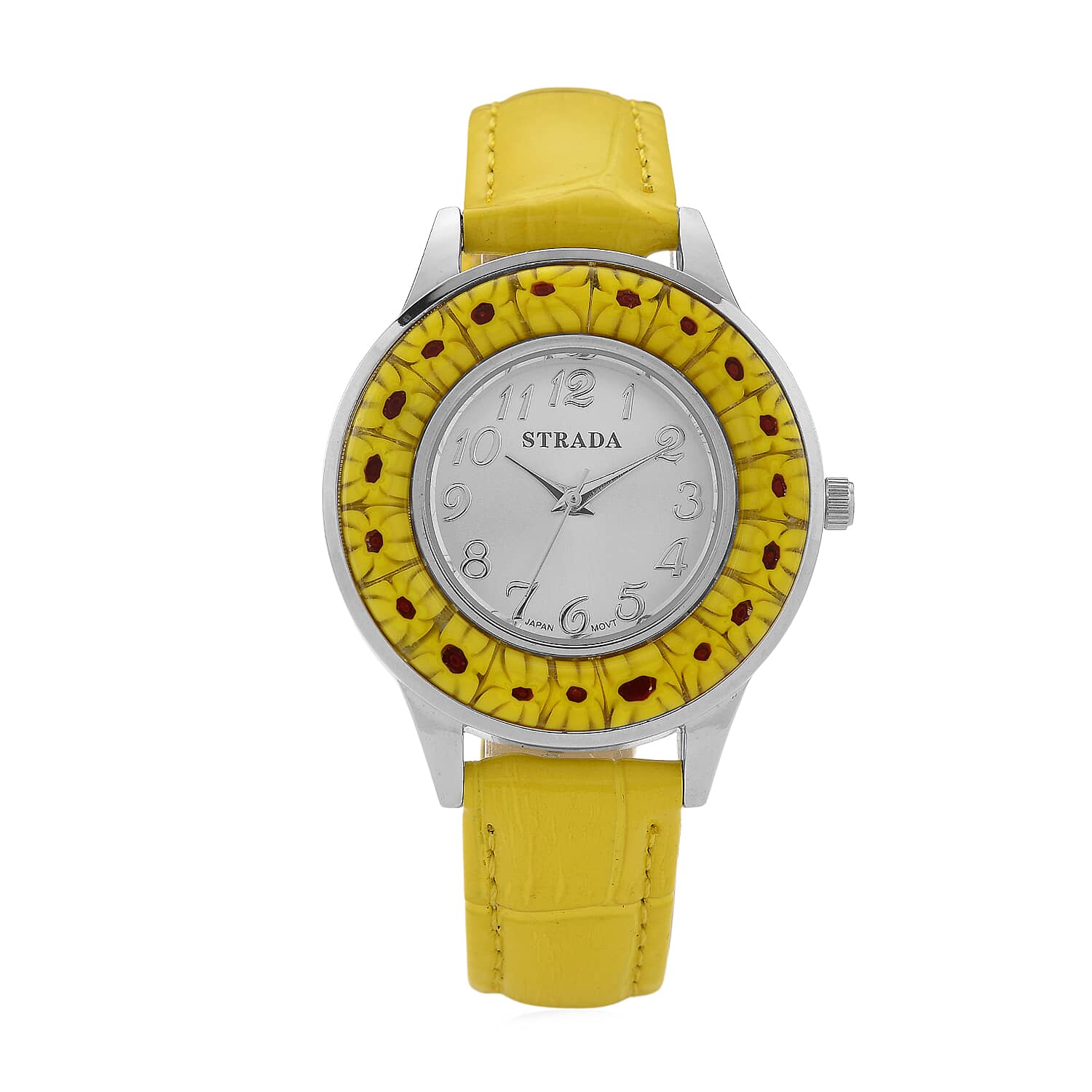Strada Yellow Color Murano Style Japanese Movement Watch with Yellow Leather Strap (37mm)