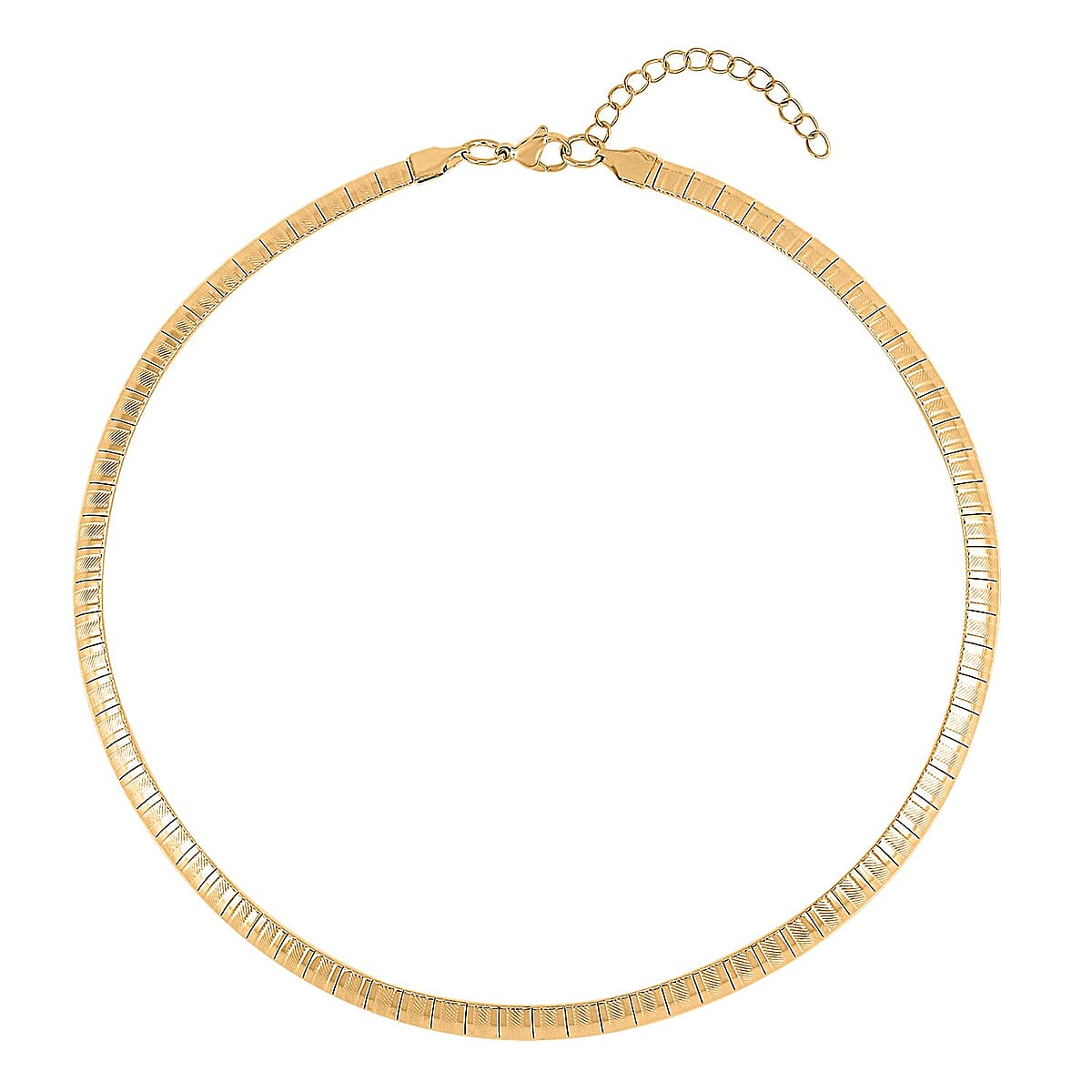 Stripe Textured Omega Chain Necklace (18-20 Inches) in ION Plated YG Stainless Steel (21 g) , Tarnish-Free, Waterproof, Sweat Proof Jewelry