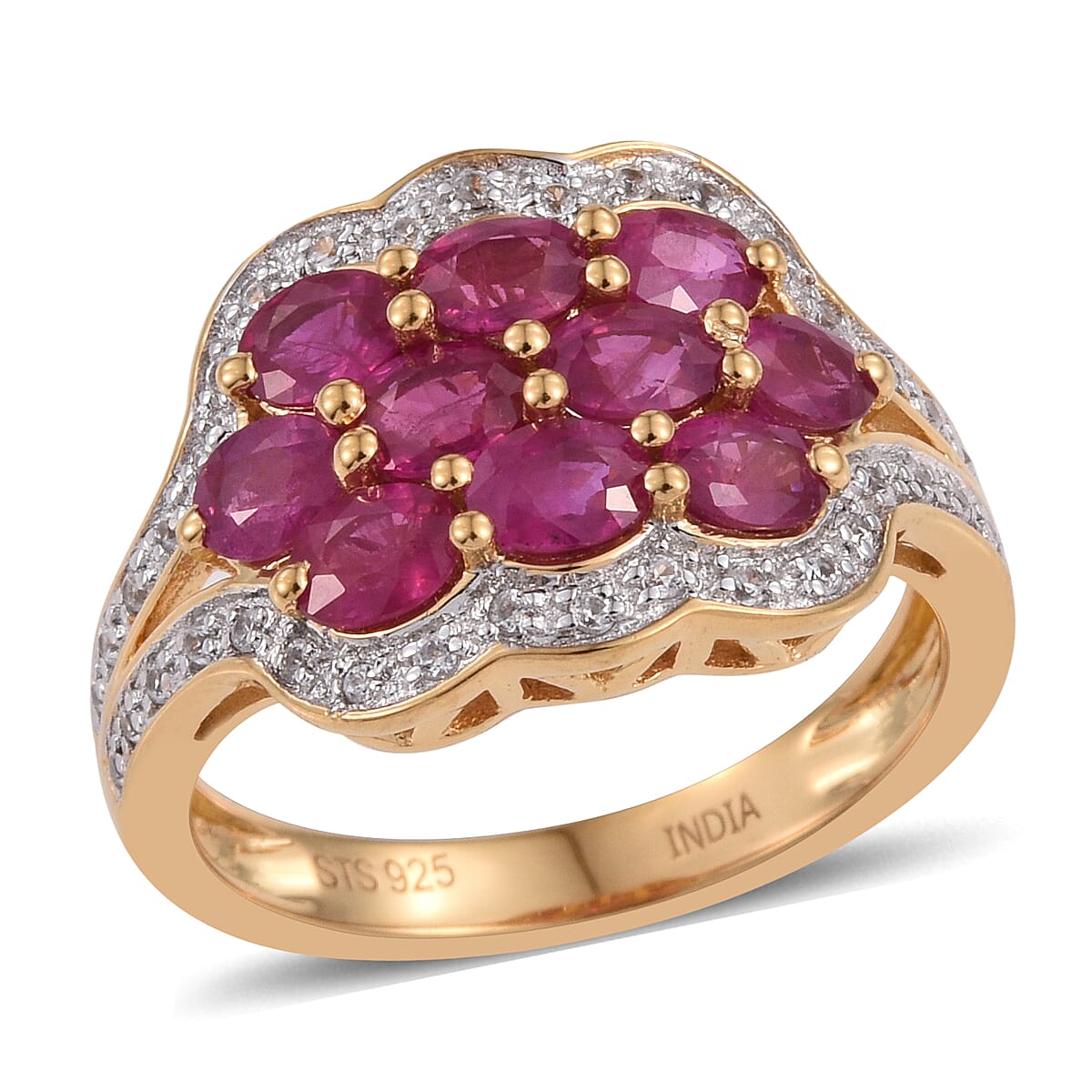 STS Closeout Ruby and Zircon 2.48 ctw Ring in 14K Yellow Gold Over Sterling Silver (Size 7.0)