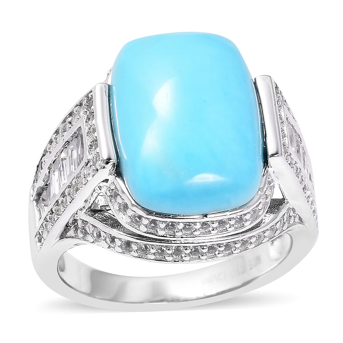 STS Closeout Sleeping Beauty Turquoise and White Topaz Ring in Platinum Over Sterling Silver (Size 7.0) 21.40 ctw