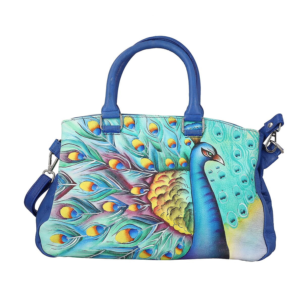 SUKRITI Blue Forest Peacock Hand Painted Genuine Leather Shoulder Bag