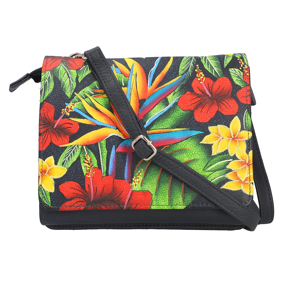 SUKRITI Shaded Navy Blue Forest Floral Theme Genuine Leather Ladies Crossbody Bag