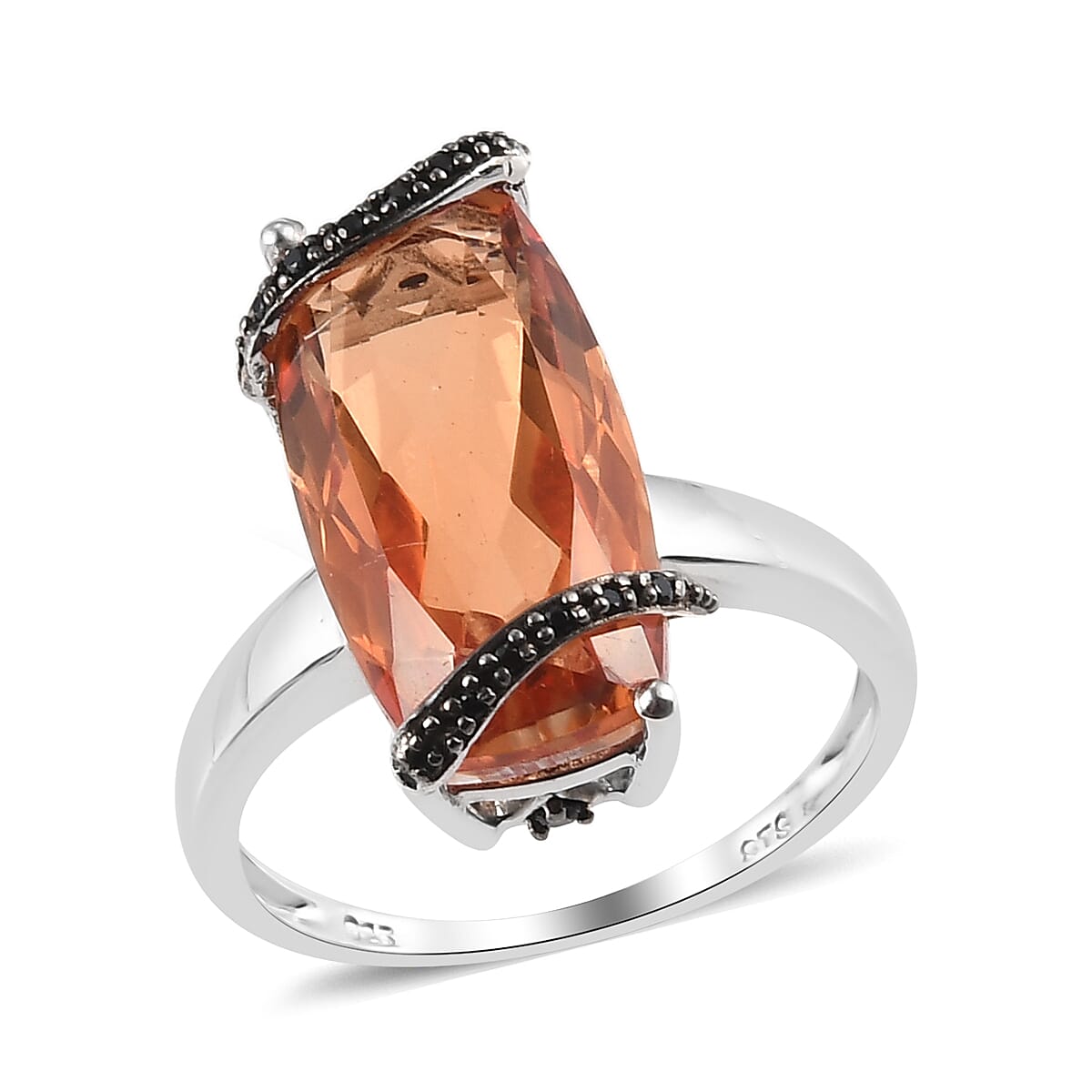 Sunfire Orange Quartz and Thai Black Spinel Ring in Platinum Over Sterling Silver (Size 10) 8.50 ctw