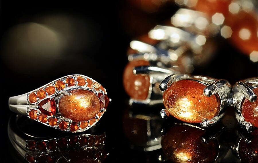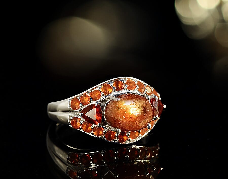 Sri Lankan sunstone captivates attention with its distinctive shimmer. Delicate glittering crystals pepper the body of this gem producing a sparkle resembling brilliant confetti.