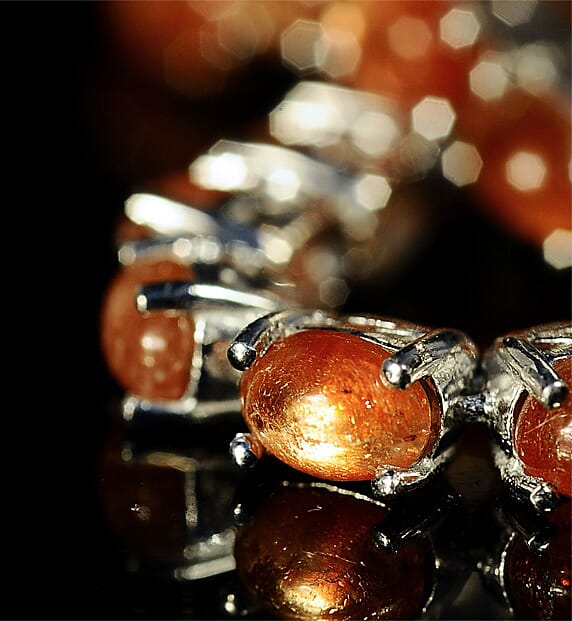 Sunstone's unique look is attributed to a phenomenon called schiller. A golden-bronze iridescent luster is created by microscopic copper platelets that are naturally infused in the stone. This phenomenon makes the stone appear to glow as if it had its own internal light source.