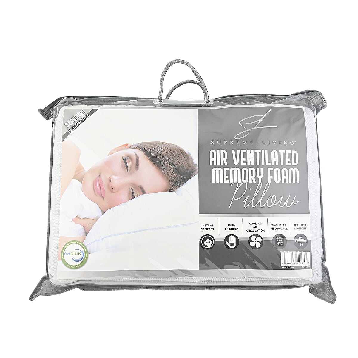 Enhance your sleep with the Supreme Living air-ventilated memory foam pillow. This breathable pillow offers exceptional orthopedic support for ultimate comfort. Made with high-quality memory foam, it contours to your head and neck for ergonomic comfort. Enjoy a restful night's sleep with this luxurious pillow.