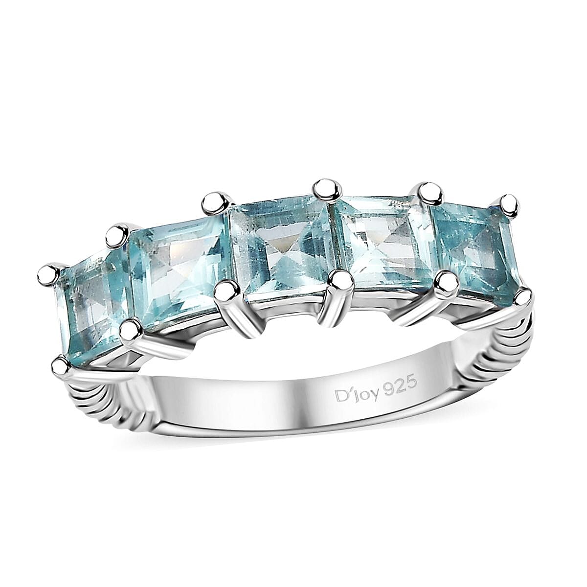 Swiss Blue Topaz 5 Stone Ring in Rhodium Over Sterling Silver (Size 10.0) 2.15 ctw