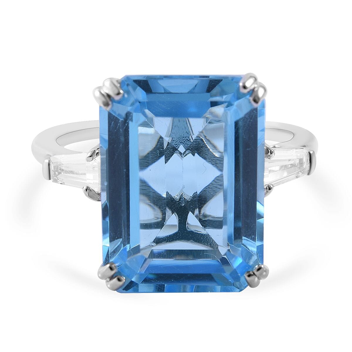 Swiss Blue Topaz and White Topaz Ring in Platinum Over Sterling Silver (Size 6.0) 13.50 ctw
