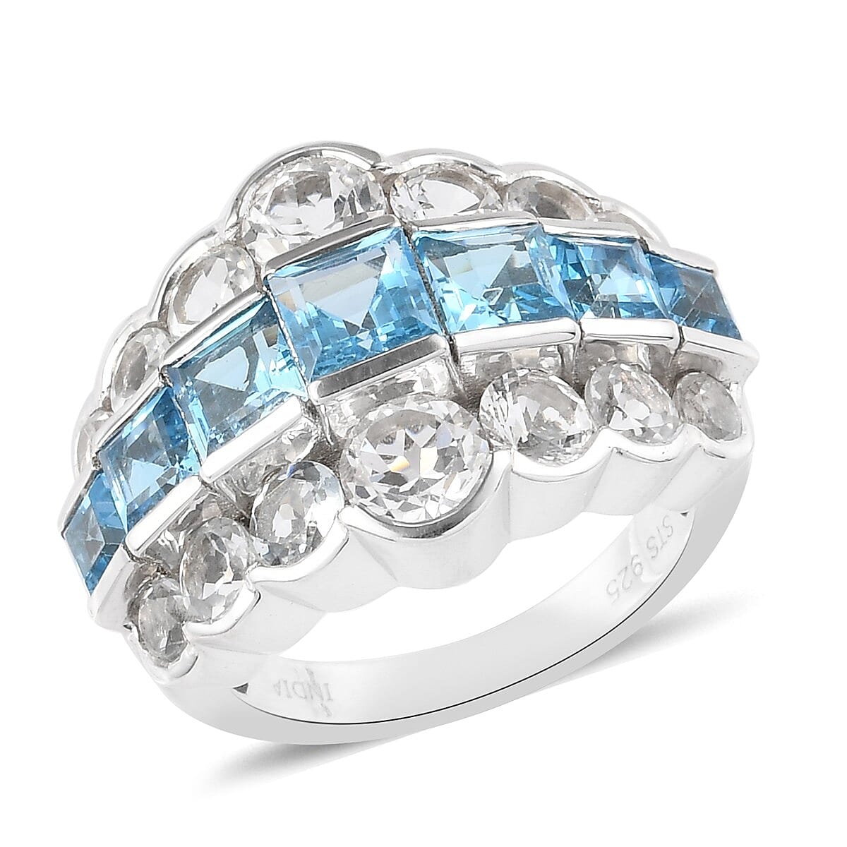 Swiss Blue Topaz and White Topaz Ring in Platinum Over Sterling Silver (Size 8.0) 7.16 Grams 6.85 ctw