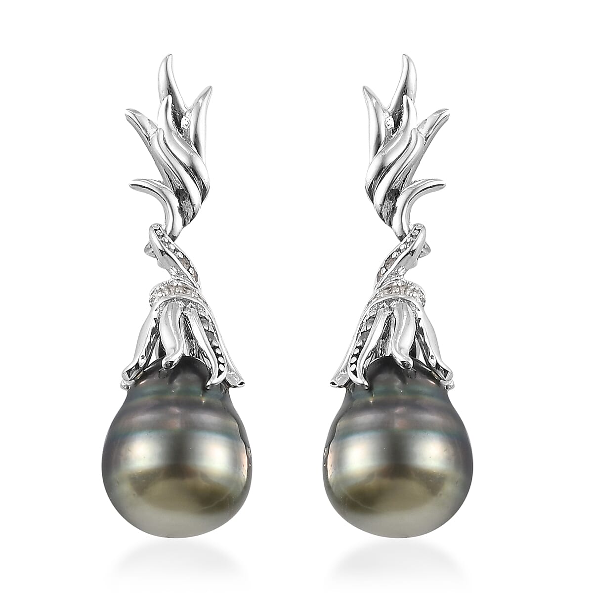 Tahitian Pearl Earrings in Platinum Over Sterling Silver