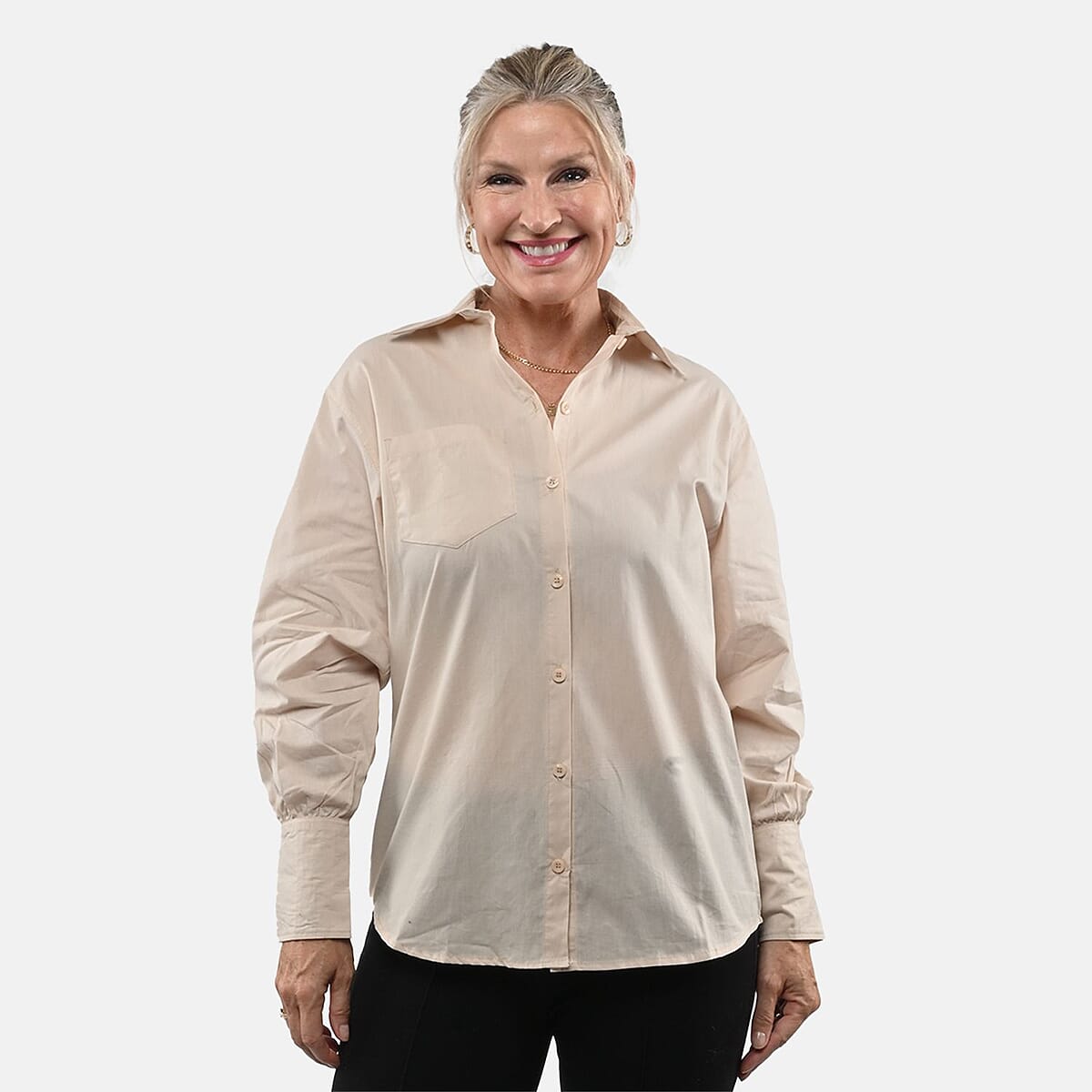 Tamsy 100% Cotton Stone Color Button up Long Sleeve Shirt - S