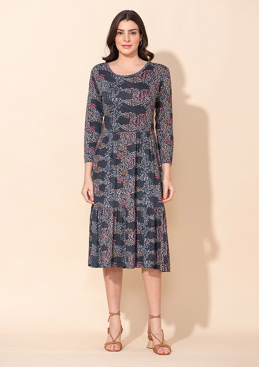 Tamsy Abstract Multi Turquoise Color Printed Round Neck Umbrella Dress - 2X