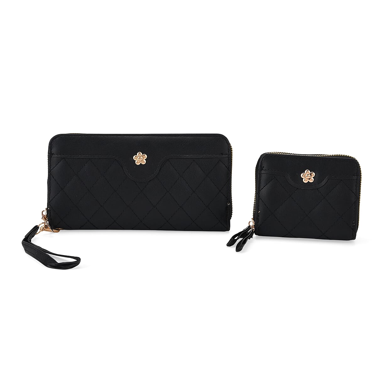 Tamsy Black Faux Leather Quilted Short Wallet and Long Wallet