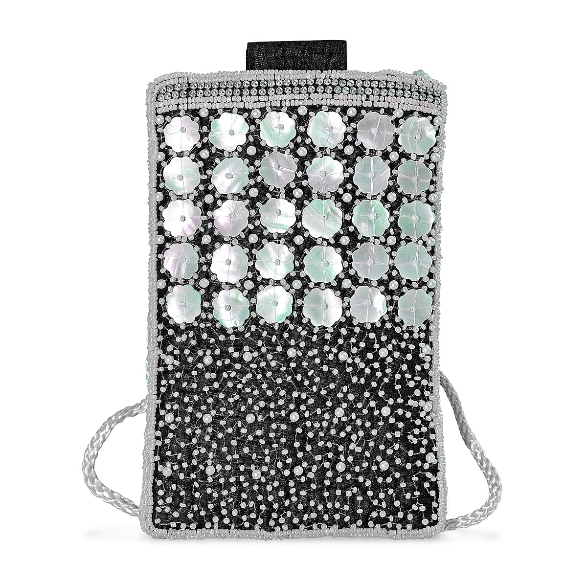 TAMSY Black Genuine Leather Bead Work Dupion Silk Crossbody Bag