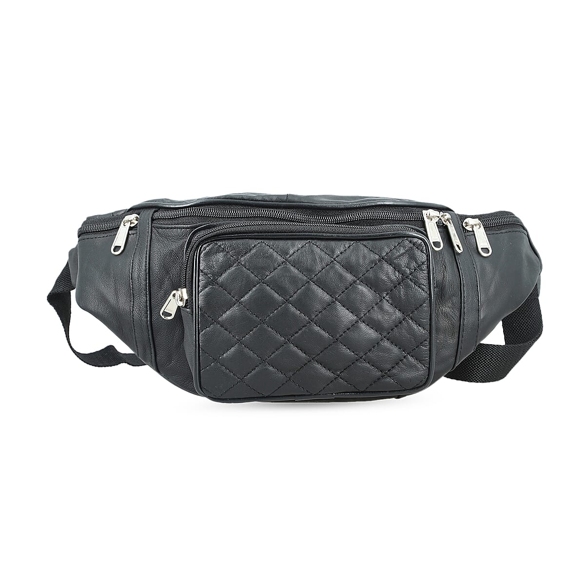 Tamsy Black Genuine Leather Fanny Pack with RFID Protection (17.5"x6.5")