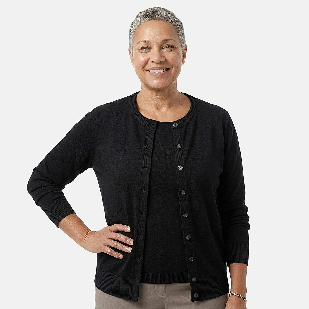 Refresh your style with the Tamsy round neck sweater with buttons. This soft knit garment brings effortless elegance to your daily rotation. It features ultra-soft viscose fabric that feels gentle against the skin. The comfortable knitwear design lets you dress up or down.