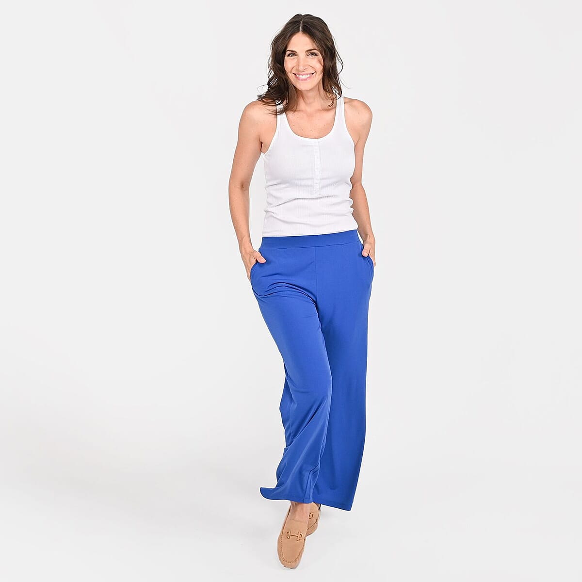 Tamsy Blue Mid Rise Wide-Leg Pants For Women - 2X