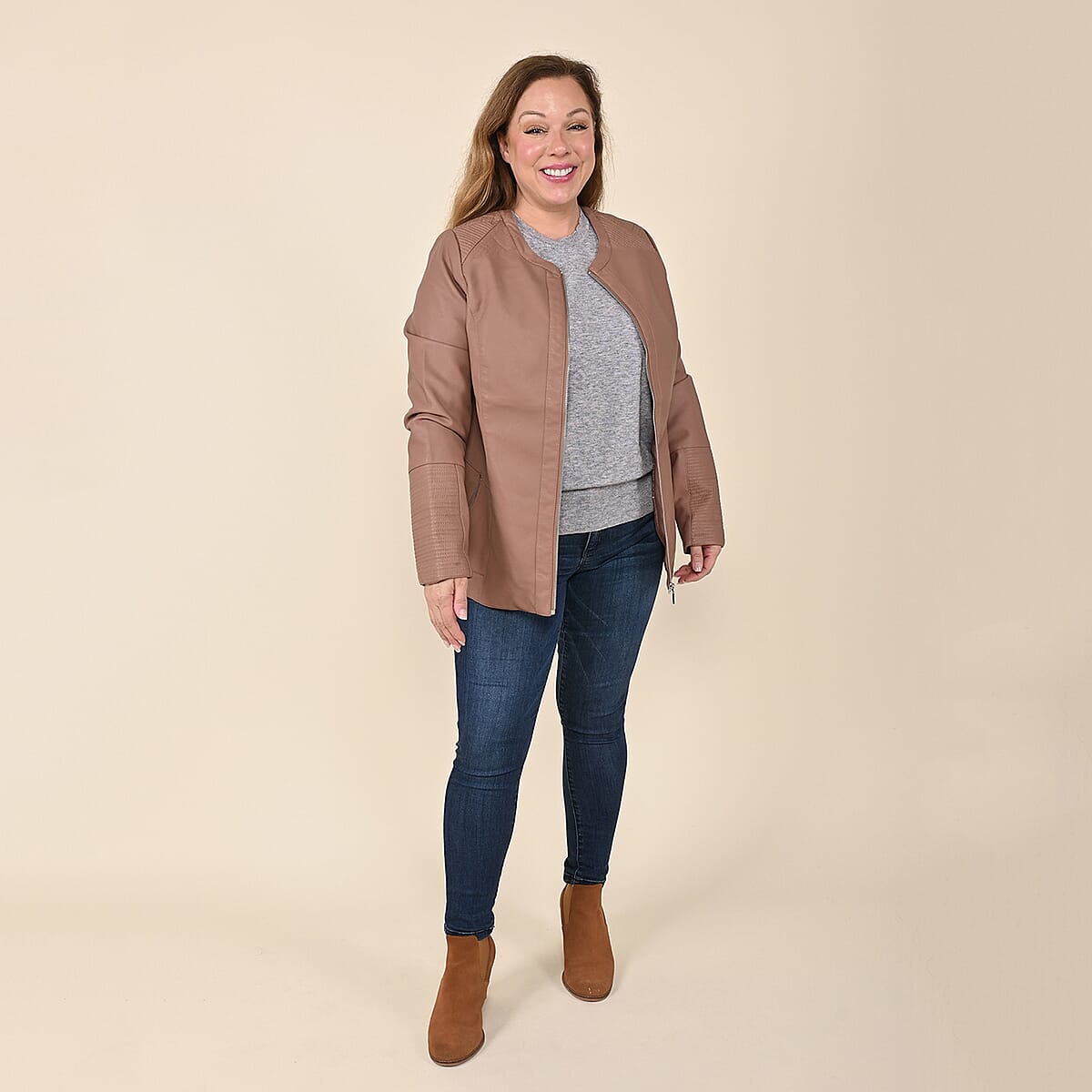 Tamsy Blush Faux Leather Zip-Up Motorcycle Jacket - S