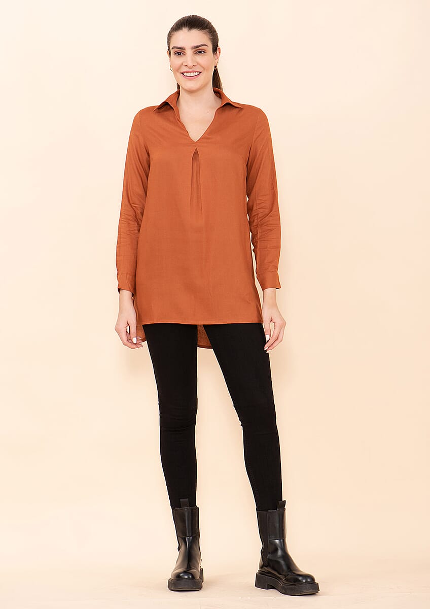 This elegant and classy top from TAMSY is perfect to wear every day. This top is made with premium rayon material making it ultra-soft and skin-friendly. The long sleeve design and v-cut collared neckline give you a trendy look. This top is ideal for wearing when going to shop, travel, casual meets, or more.