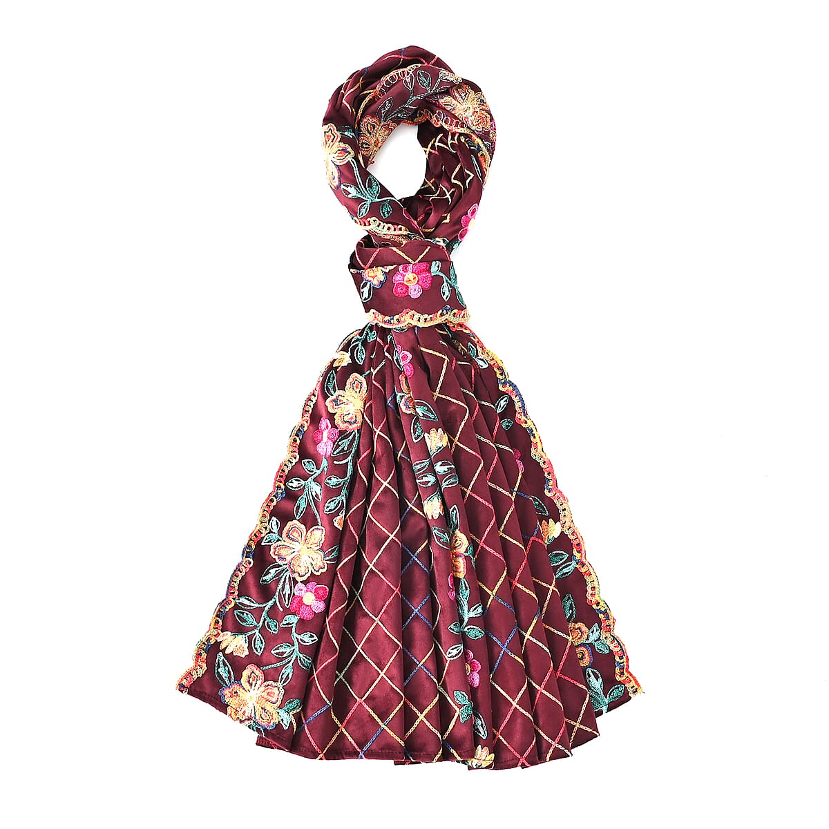TAMSY Burgundy Floral Embroidered Polyester Scarf - One Size
