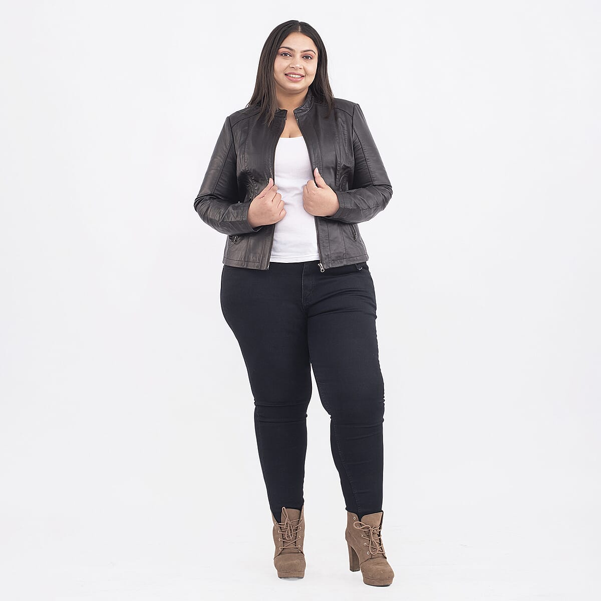 Add a stylish element to your fashion wardrobe with this shiny, ultra-soft leather jacket by Tamsy. This jacket is Made of genuine leather and coordinates well with most outfits to make a lasting impact. Stay comfortable and look fashionable all day by pairing a women's work jacket with jeans or shorts and cool sneakers.