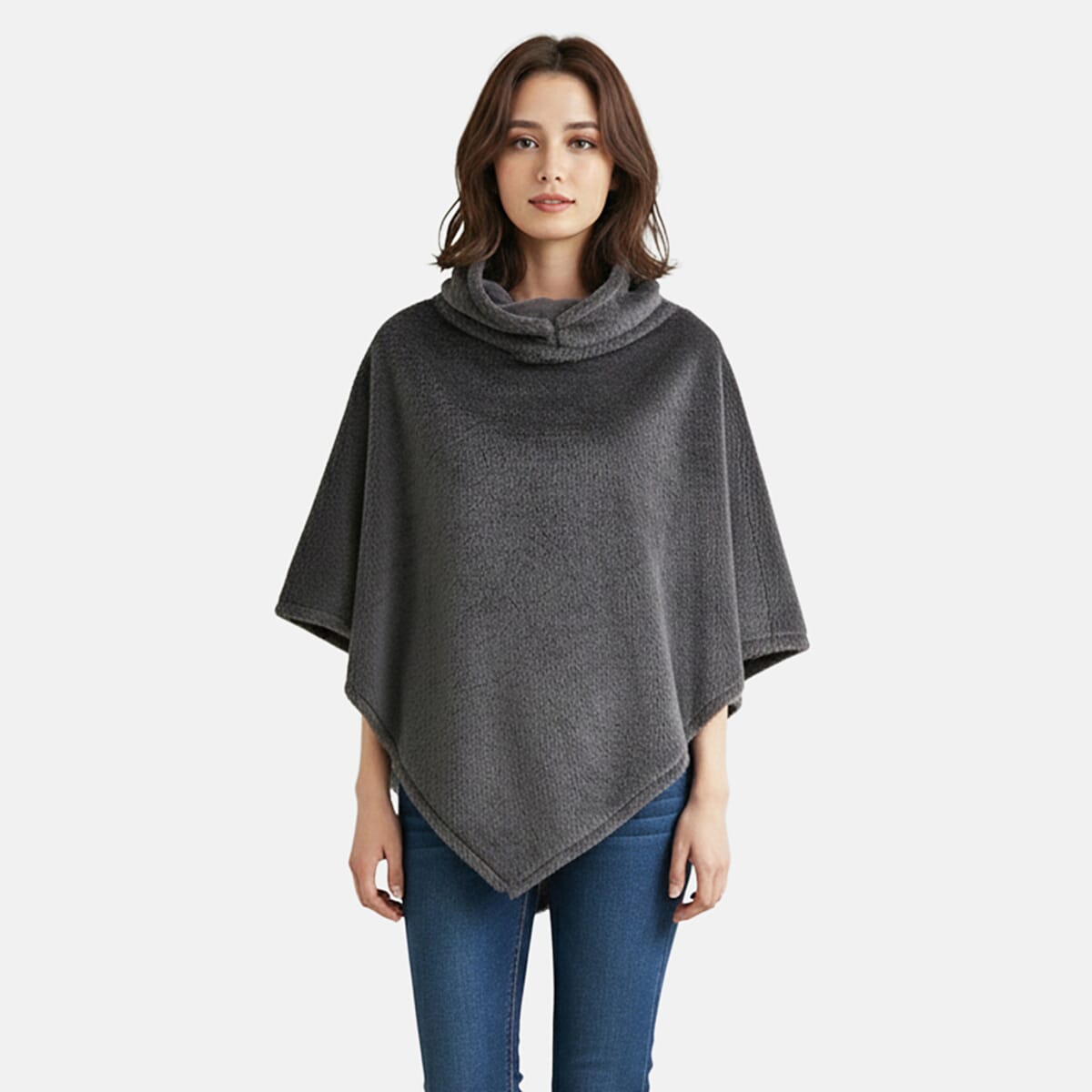 Tamsy Dark Gray Poncho with Hoodie - One Size Fits Most