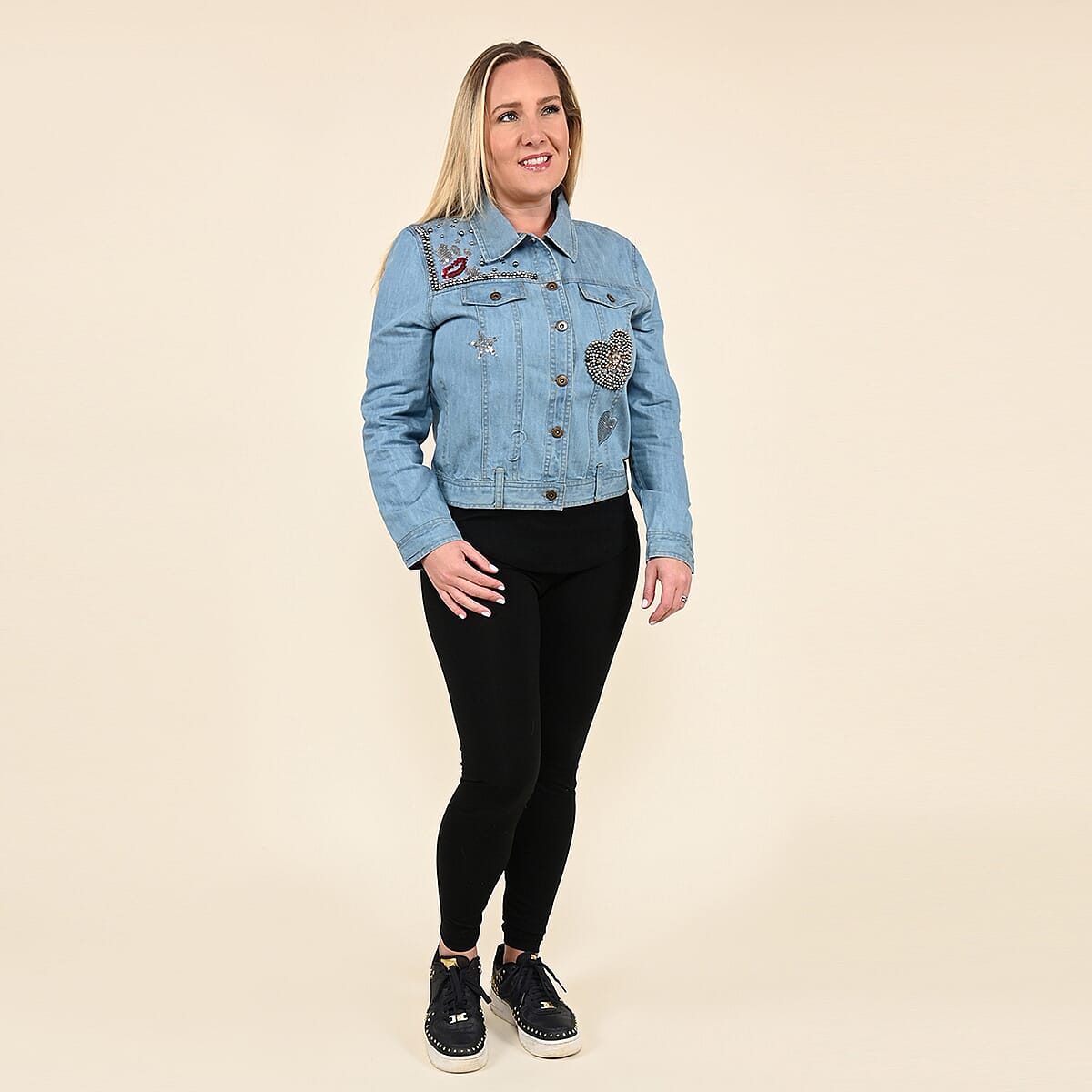 Add glam to your basic outfit with this beautifully designed denim jacket from TAMSY. It is crafted with crystal embellishments to provide you with an appealing look. It has a collared neckline, button closure, and full sleeve pattern, making it perfect for everyday wear. Carry this women’s jacket when heading outdoors, traveling, roaming with friends, shopping, or more.