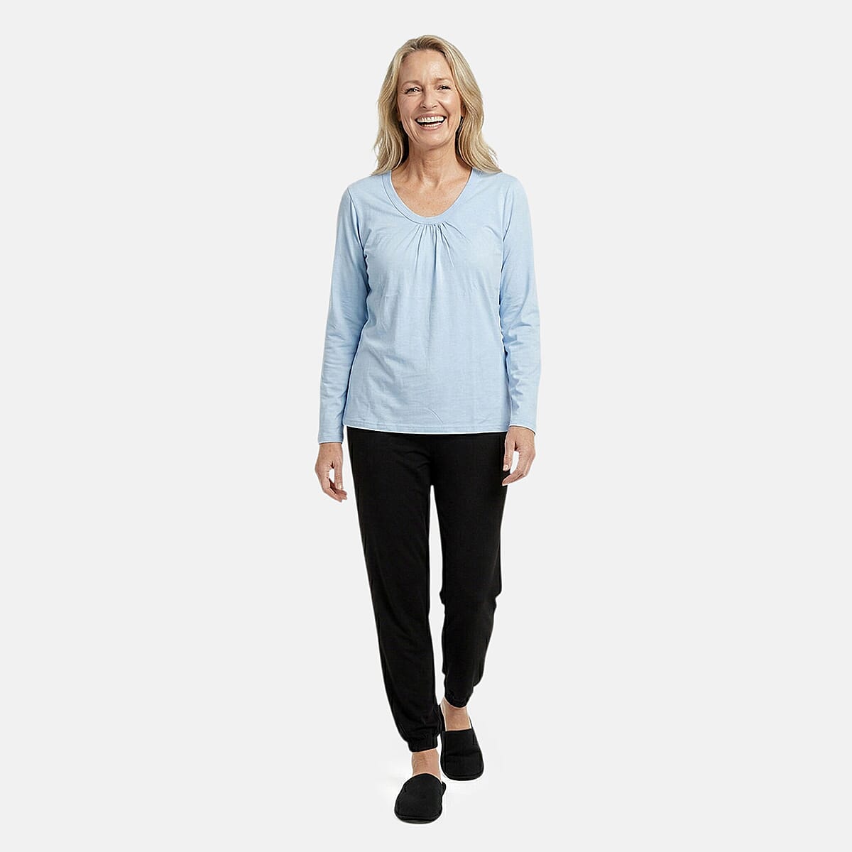 Tamsy Light Blue Top with Black Jogger Lounge Set - L