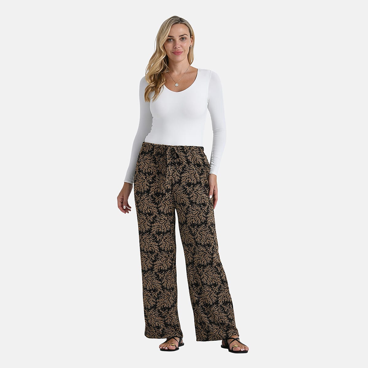 TAMSY Metallic Gold Leaf Print Pant with Fabric Waist Belt – One Size Fits Most