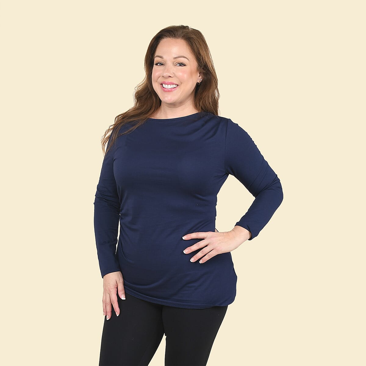 Get a minimal and classy look to showcase your stylish appearance with this stunning drape top from TAMSY. It comes with a long sleeve design and a round neckline to give you all-day comfort. This top is made with high-quality fabric to make it durable and skin-friendly. Wear this drape top when heading to the office, chilling with friends, or as casual daily wear.