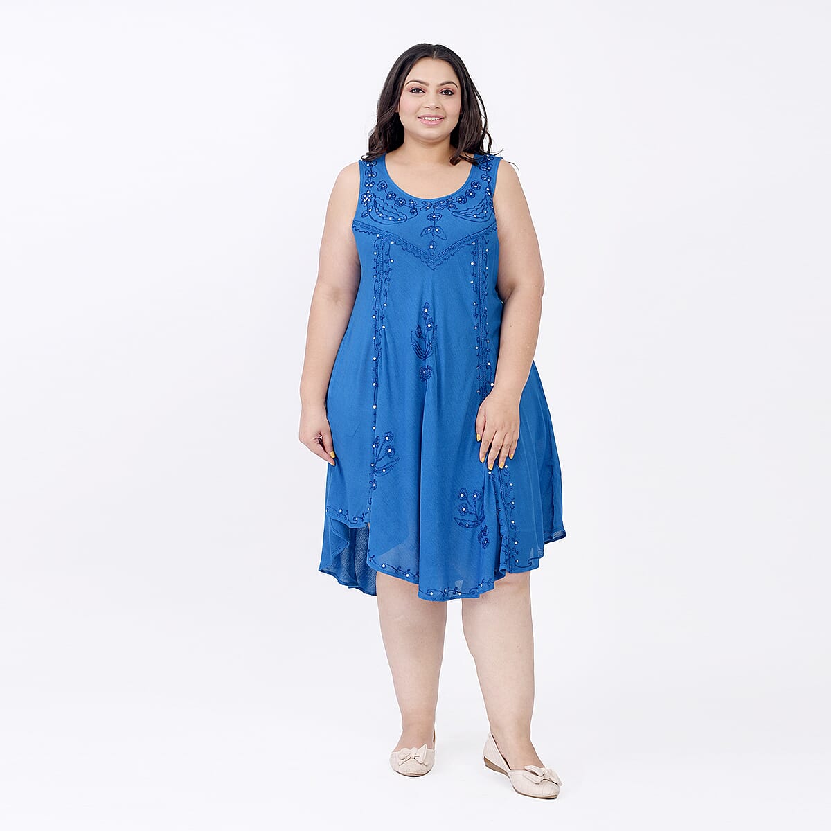 The sleeveless umbrella dress from Tamsy is a gorgeous and unique piece for your wardrobe. Made with soft and comfortable rayon fabric, this dress features intricate embroidery of delicate florals, adding a touch of elegance and femininity. The umbrella shape and flowy silhouette create a relaxed and comfortable fit, making it perfect for all-day wear. The sleeveless design and versatile style allow you to wear this dress year-round, while the beautiful embroidery ensures that you will stand out in a crowd.