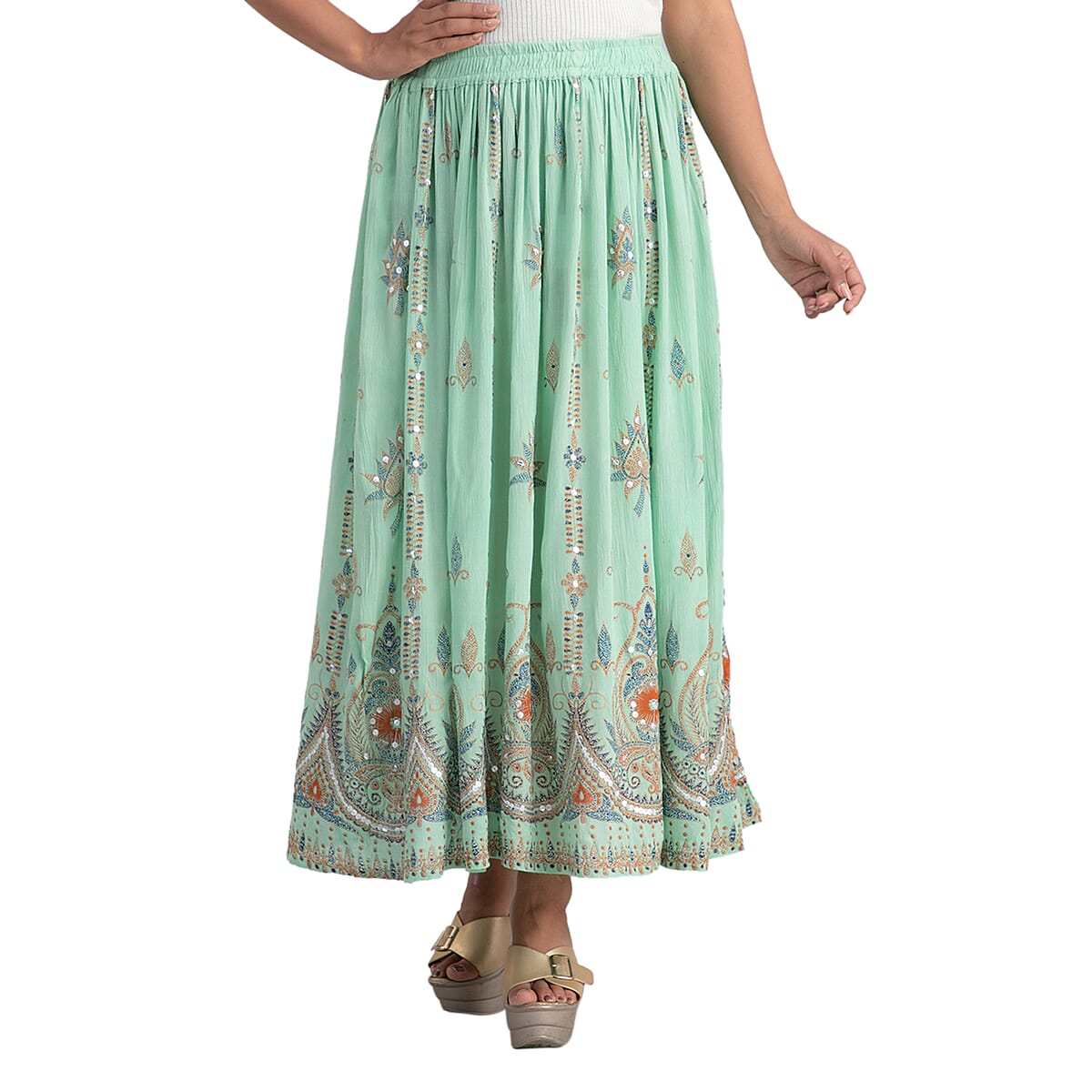 Elevate your style quotient with this long skirt embellished with beautiful sequin pattern. Well-crafted in premium quality fabric for a soft feel and good drape, the charming silhouette of this long skirt gives it a chic demeanor.