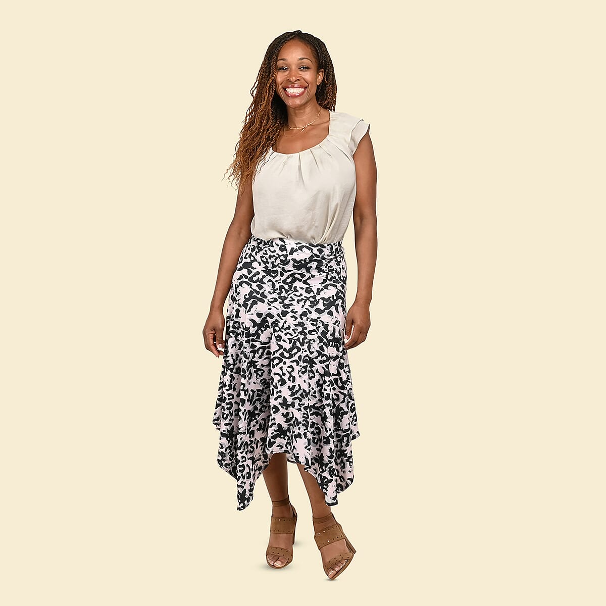 Refresh your casual look by wearing this beautiful midi skirt from TAMSY. This midi skirt is designed with a floral pattern to enhance your appearance. This below-knee skirt has an elastic waist and asymmetrical hemline to give you the perfect body shape. Wear this skirt as your regular wear when going to the office or heading outdoor.