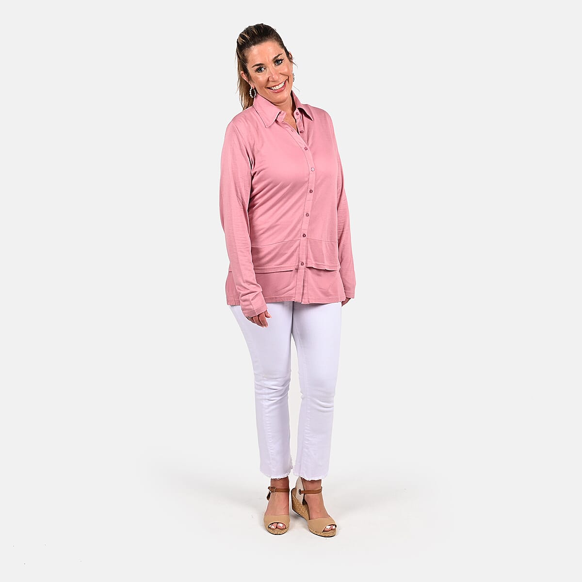 Update your casual collection with this gorgeous woven top designed by TAMSY. This top is designed with a solid color pattern to make it appealing. The collared neckline and full sleeves make this top comfortable to wear. This top is made with durable material. Wear this top when heading outdoors, parties, shopping, or more.