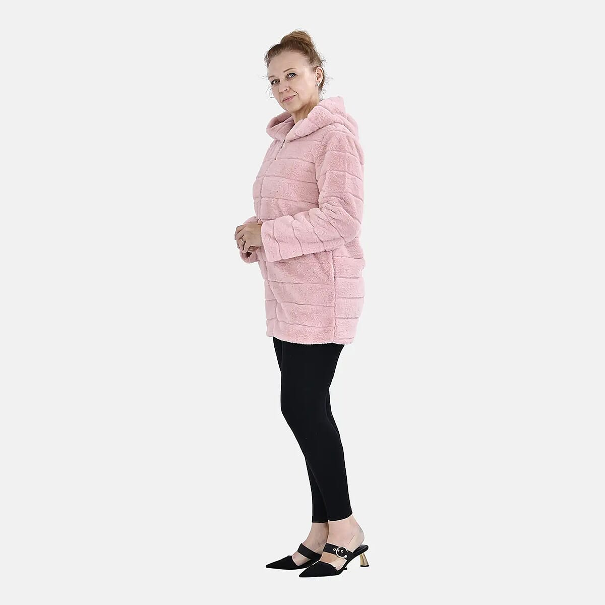 Tamsy Pink Stripe Embossed Hooded Faux Fur Coat - L/XL