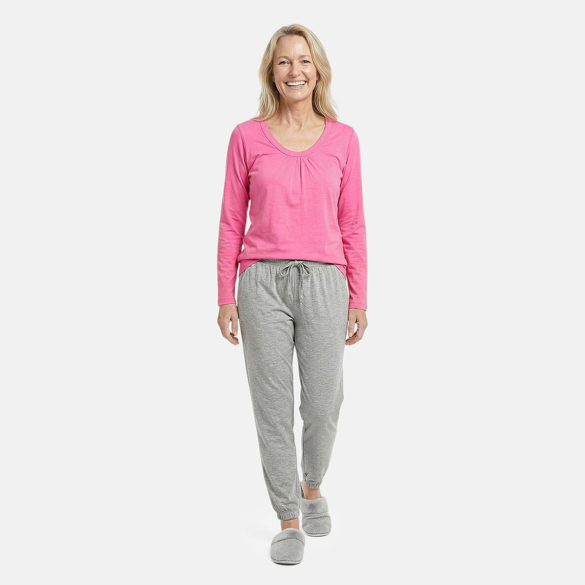 Tamsy Pink Top with Gray Jogger Lounge Set - XL