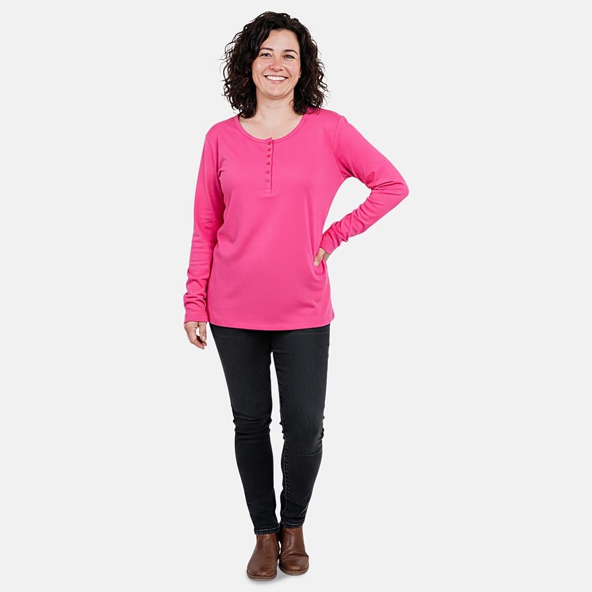 Tamsy Pink Topaz Button Top - S