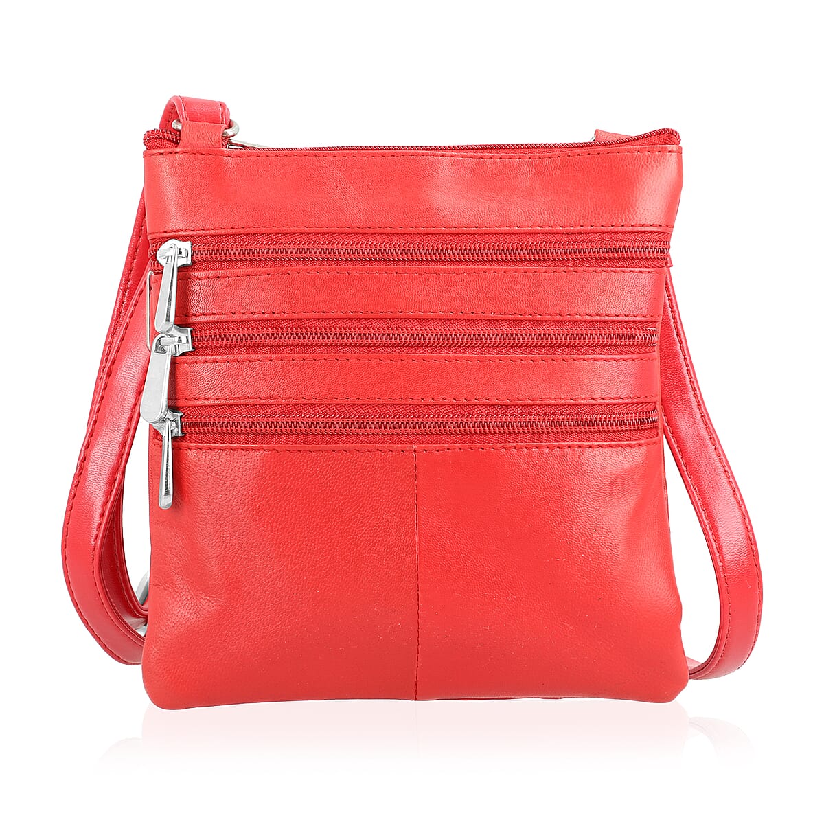 Tamsy Red Genuine Leather Crossbody Bag with 3 Front Zippers