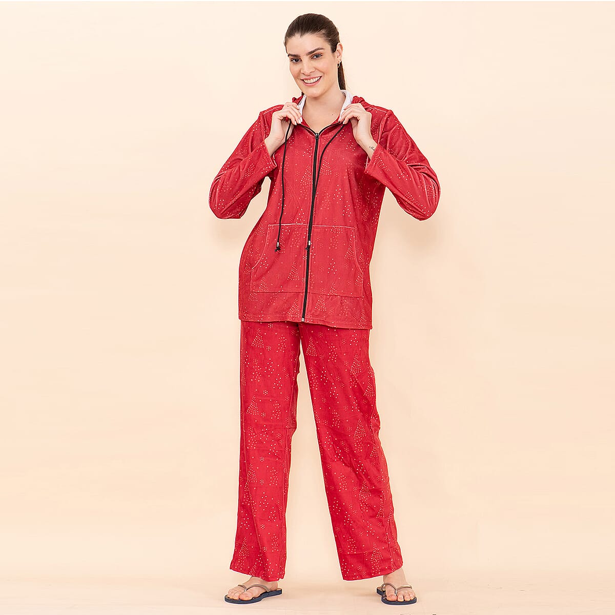 Tamsy Red Sparkle Printed Brushed Flannel Lounge Wear Set - S