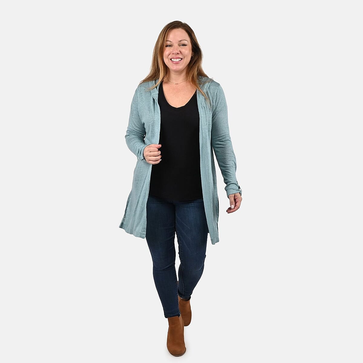 This stylish and comfortable women’s cardigan designed by TAMSY will be your ideal outdoor companion. This open-front cardigan is crafted with premium linen fabric, making it perfect for all-day wear. The open-front design and long sleeves make it easy to wear. Wear this stunning linen cardigan when heading outdoors, shopping, traveling, or more.