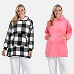 Tamsy Set of 2 Pink Solid and Black Plaid Pattern, Fleece Hoodie Sweater Blanket with Kangaroo Pocket
