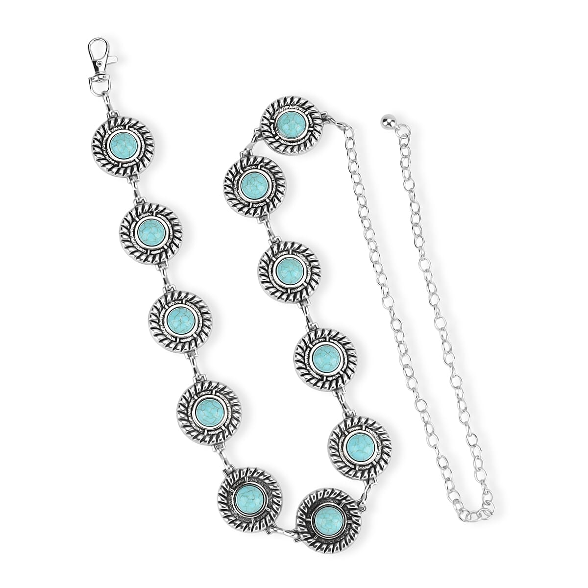 Tamsy Silvertone Large Bohemian Design Concho Belt